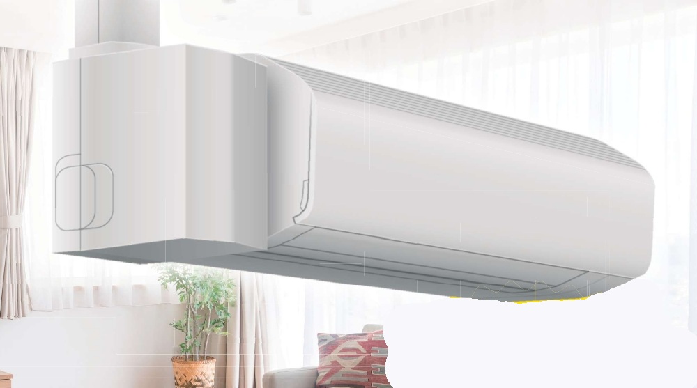 そこで登場したのが「ハーフサイズドレンアップキット」です。従来品の約半分のサイズにすることで、壁掛けエアコンの横に設置しても目立ちにくく、室内の景観を損ねません。また、ドレン配管・冷媒配管・換気(加湿)ホースを一体で施工できる設計となっており、施工性に優れ、配管まわりもすっきりと仕上がります。