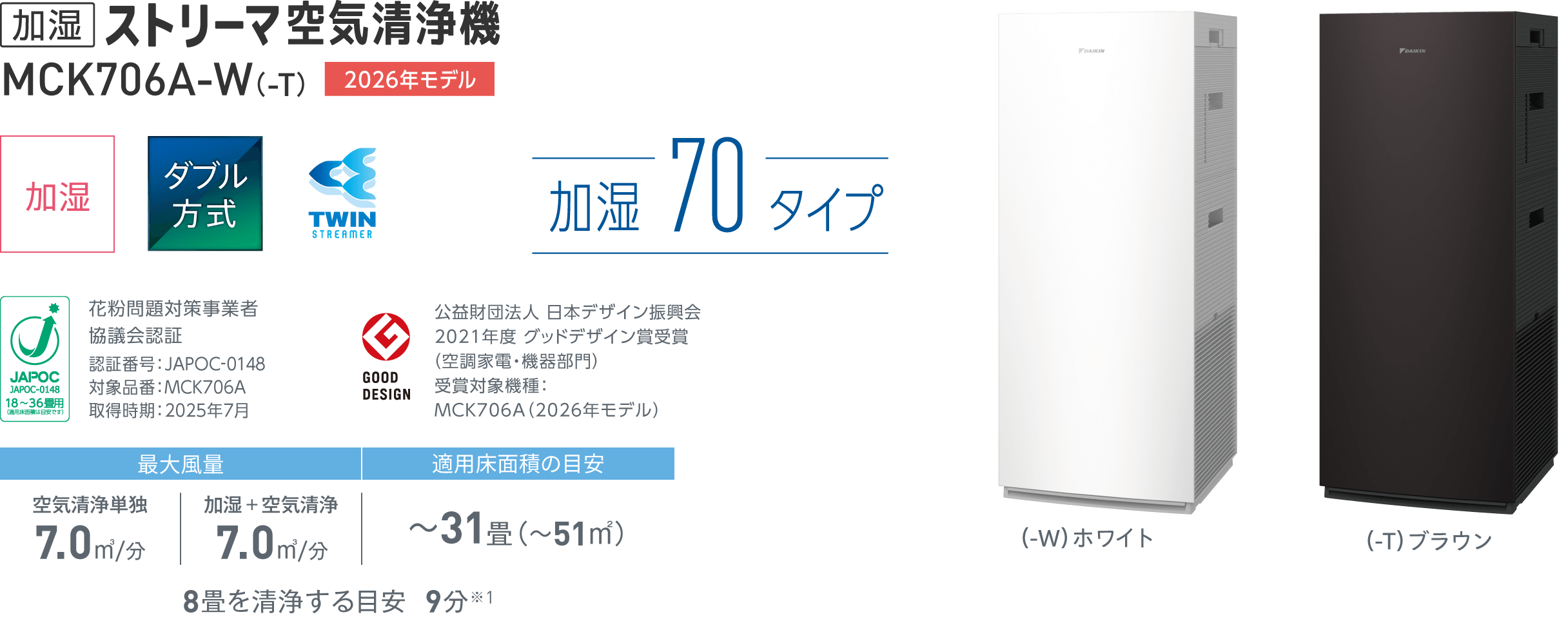 加湿・集塵・脱臭 旧基準~31畳 ➡新基準~20畳