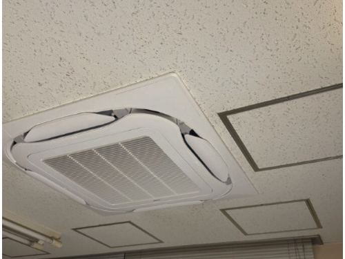| 住所:神戸市兵庫区 形態:天井埋込形(4方向) ⇒ 天井埋込形(ラウンドフロー) 業種:オフィス 内容:エアコン取替工事