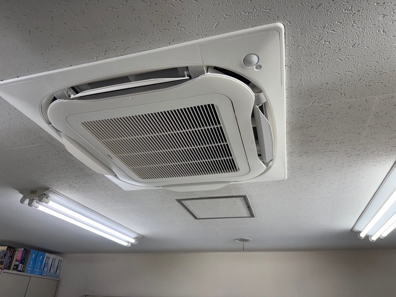 | 備考・変化のポイント | 新しく設置した業務用エアコンは、高効率運転と快適性を両立した省エネモデルです。 360°全周吹出しによるムラのない空調と、人感・床温センサーによる自動制御がついています。無駄なエネルギー消費を抑え、電力コストの削減に貢献します。 |