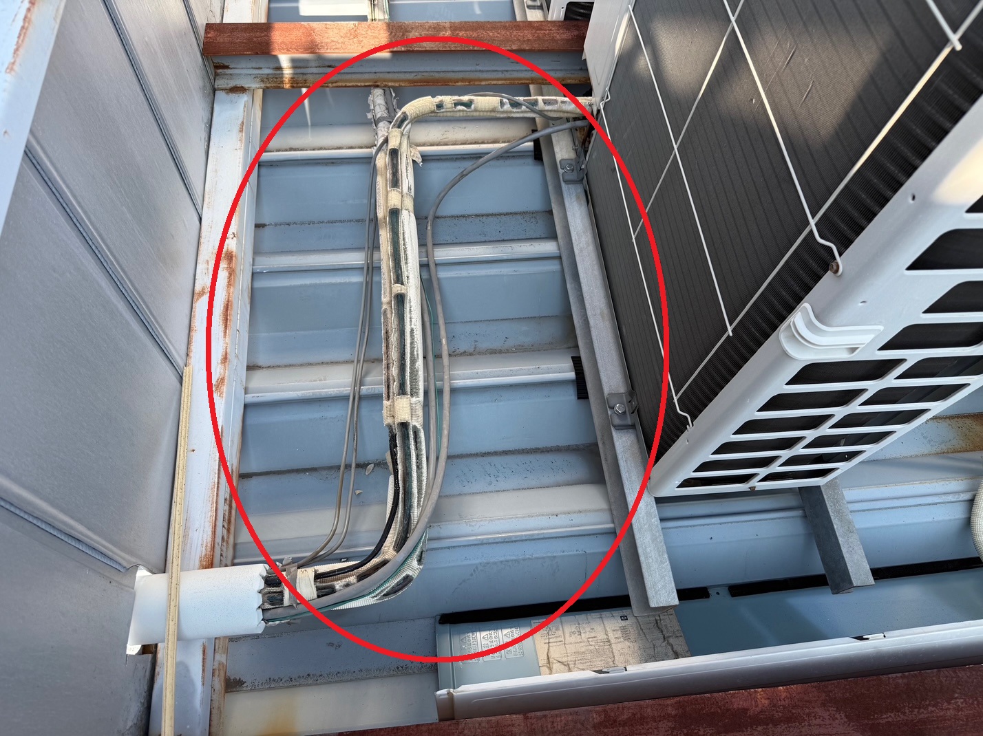 配管は既設のものを使用しますが、屋上に設置していたため、直射日光を浴びて傷みがひどい状態でした。