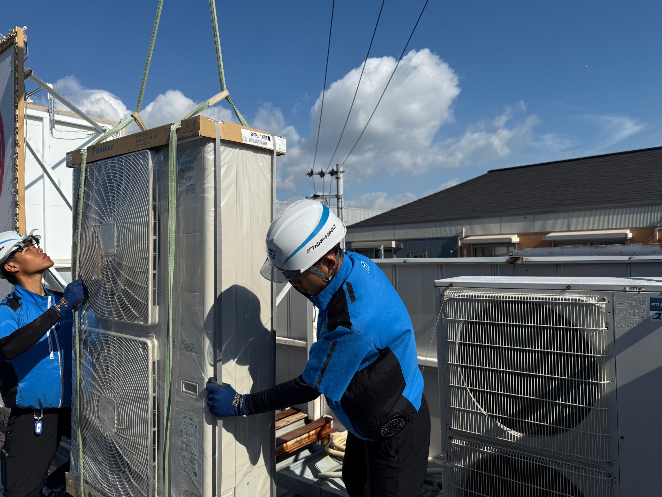新しい室外機の搬入作業