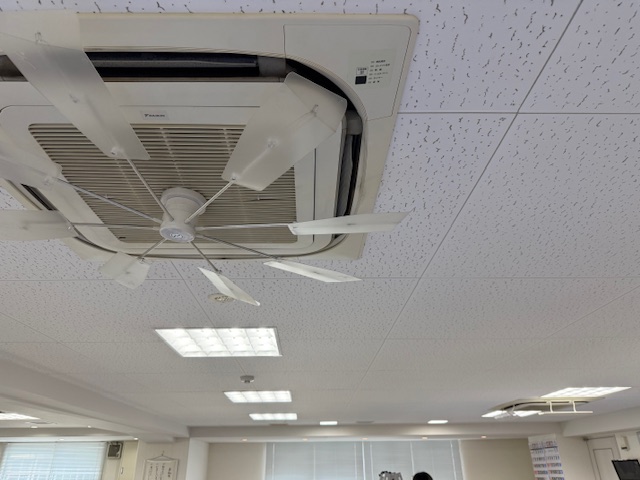 もう1台の新しいエアコンが設置されました。新設エアコンは、フラップ角度をより水平な約20°まで調整することができ、人に当たりにくい仕様となっています。