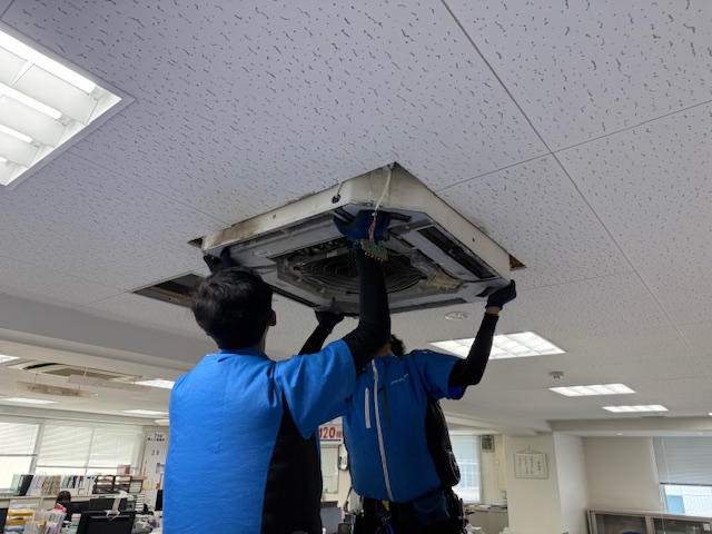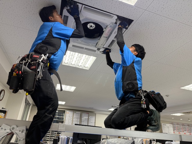 今回の工事は、オフィスで働く方々がいらっしゃる場所でのエアコン取替作業でした。お客様の業務に支障が出ないよう、作業時間帯や工事方法について事前にお客様と打ち合わせをさせていただき、スムーズな施工を心がけました。