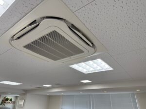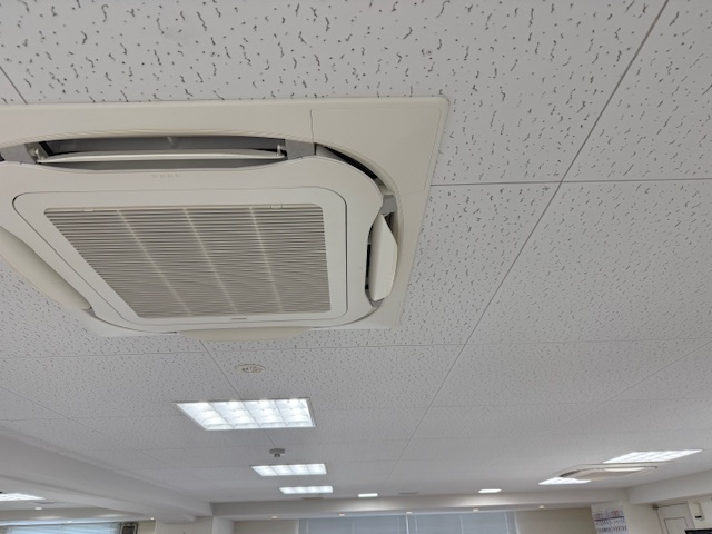 今回の施工では、これまでひとつのリモコンで複数台のエアコンを一括制御していた状態から、設定を変えることにより、一部のエアコンを切り離して運転・調節できるように変更しました。これにより、柔軟な空調管理が可能となりました。