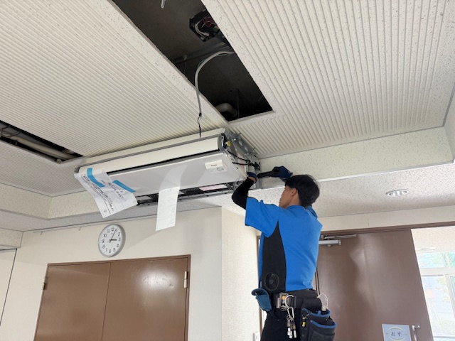 今回は、神戸市西区のお客様よりご依頼いただいた集会所の業務用エアコン取替工事の様子をご紹介します。