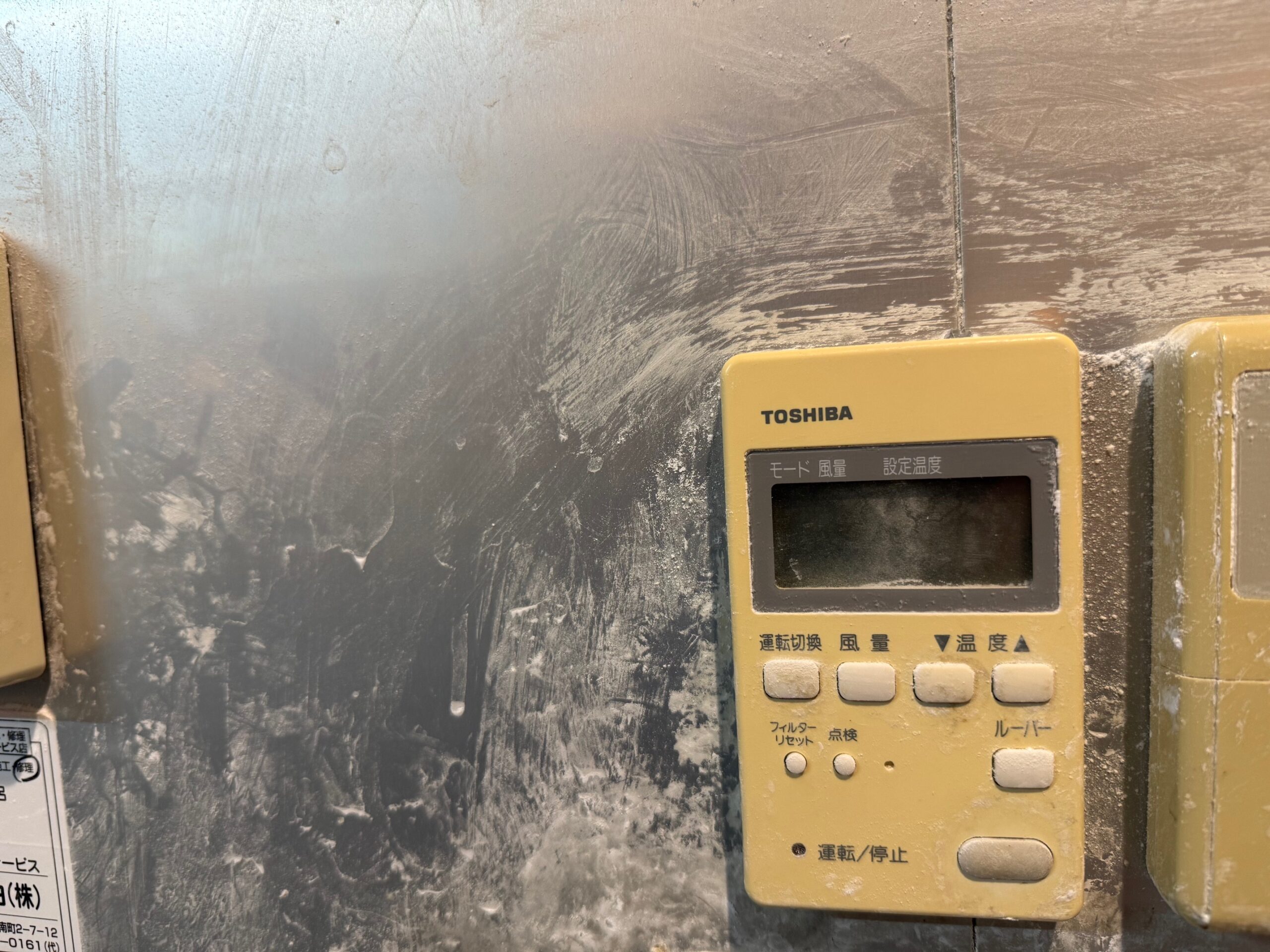 既設のリモコンです。お客様の業務内容上、どうしても粉等が付着しがちです。
