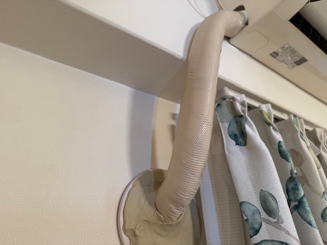 現状は、配管が外にむき出しの状態で、壁の貫通部まわりをパテで埋めている状態でした。