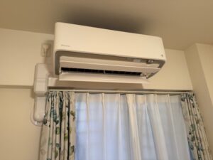 既設エアコンを撤去し、新しいエアコンへ取替えたあと、試運転で動作確認まで実施しています。
