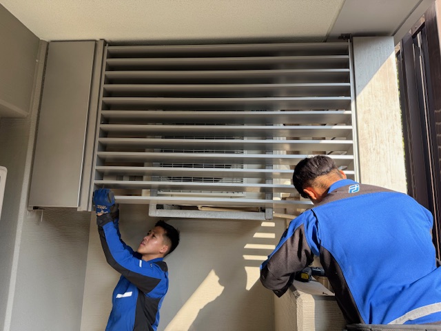 また、前面の目隠し格子を取り外してから室外機の取替を行うなど、